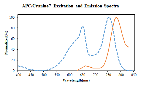 | Conjugation Information | APC/Cyanine 7 is designed to be excited by the Red (627-640 nm) lasers and detected using an optical filter centered near 780 nm (e.g., a 780/60 nm bandpass filter). |